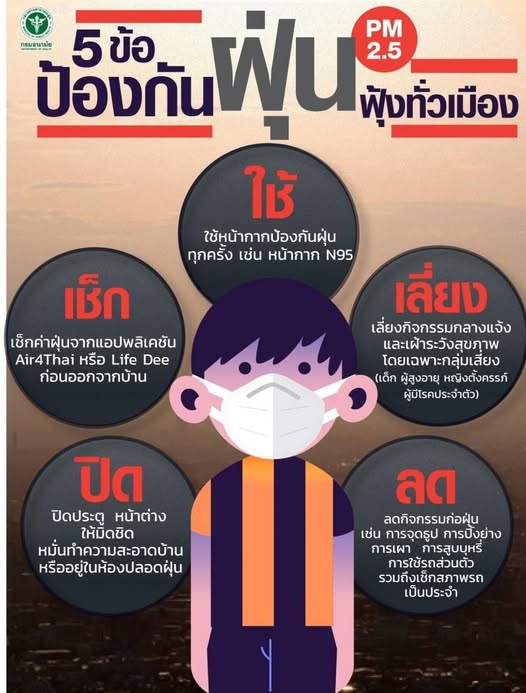5 วิธีป้องกันตนเองและคนรอบข้างจากฝุ่น PM2.5 ด้วยความห่วงใยและปรารถนาดีจาก สภ.ตากูก Facebook page
