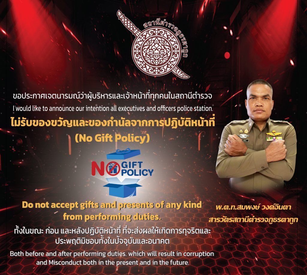 นโยบายไม่รับของขวัญและของกำนัลทุกชนิด (No Gift Policy) จากการปฏิบัติหน้าที่