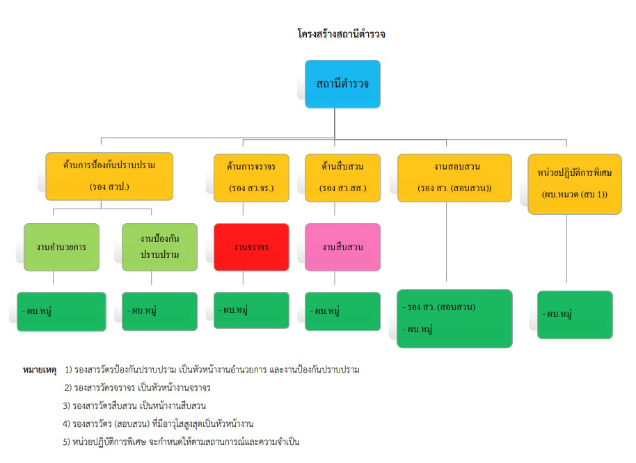 มีหน้าที่เกี่ยวกับการอำนวยการ การวางแผน การตรวจสอบติดตามและประเมินผลงานที่เกี่ยวกับนโยบาย ยุทธศาสตร์ และแผนงานของสถานีตำรวจ งานการบริหารบุคลากร งานจเรตำรวจ งานกิจการพิเศษ งานความมั่นคง การศึกษาการฝึกอบรม งานวิชาการ สวัสดิการ การพัฒนา การบริหารจัดการ งบประมาณ การเงิน การพัสดุ การพลาธิการและ สรรพวุธ การส่งกำลังบำรุง รวมทั้งลักษณะงานอื่นๆ ที่เกี่ยวข้องหรือเป็นส่วนประกอบของงานดังกล่าว เพื่อส่งเสริมหรือสนับสนุนการปฏิบัติงานของสถานีตำรวจ